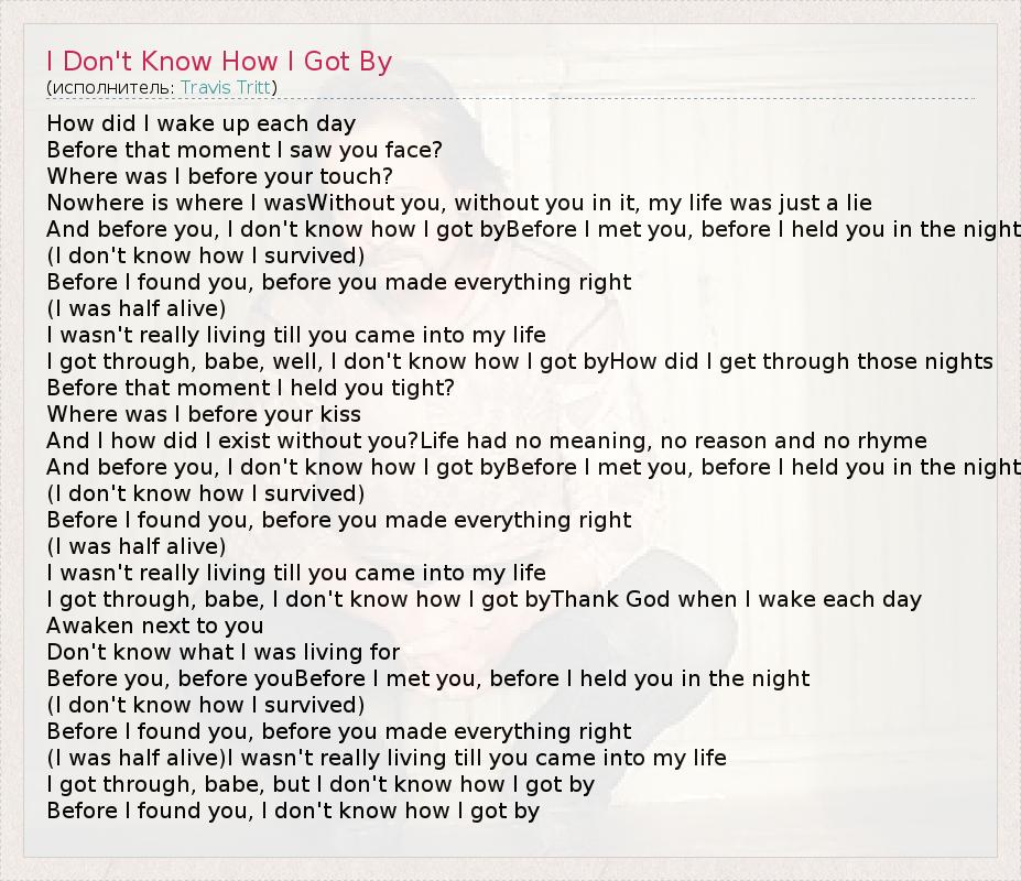 ГлавнаяИсполнителиTravis TrittI Don't Know How I Got By