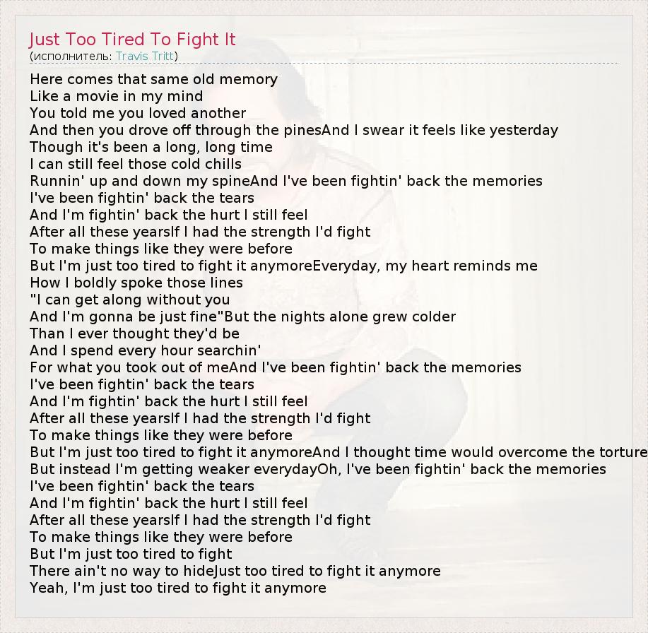 А как ты думаешь, о чем песня "Just Too Tired To Fight It" ?