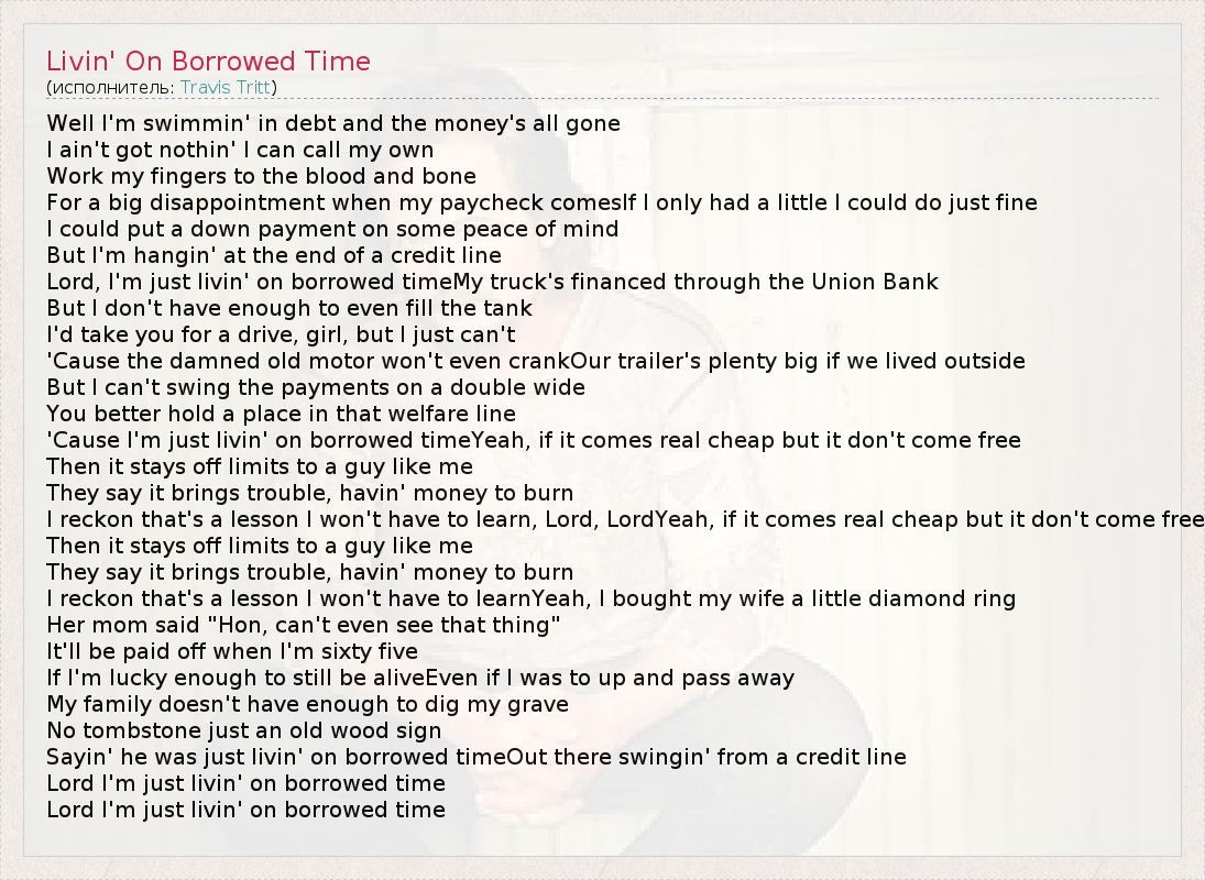 А как ты думаешь, о чем песня "Livin' On Borrowed Time" ?