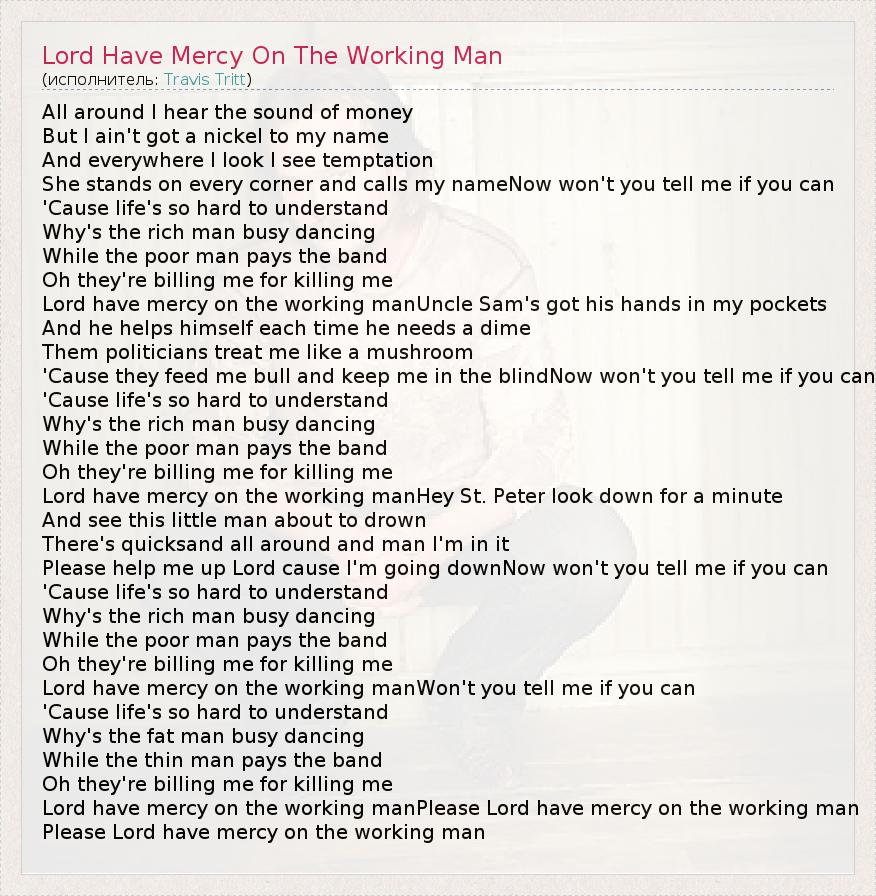 А как ты думаешь, о чем песня "Lord Have Mercy On The Working Man" ?