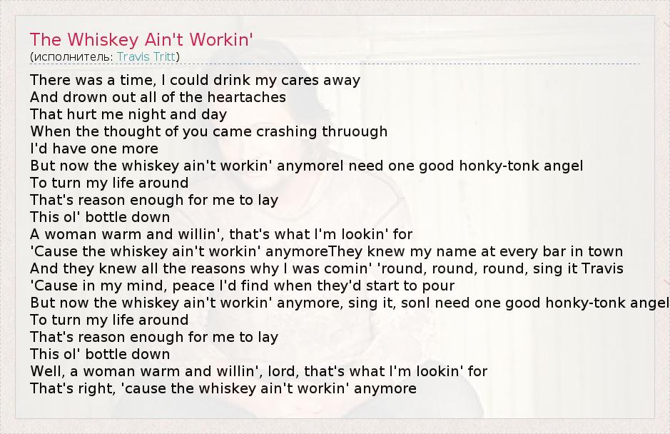 А как ты думаешь, о чем песня "The Whiskey Ain't Workin'" ?