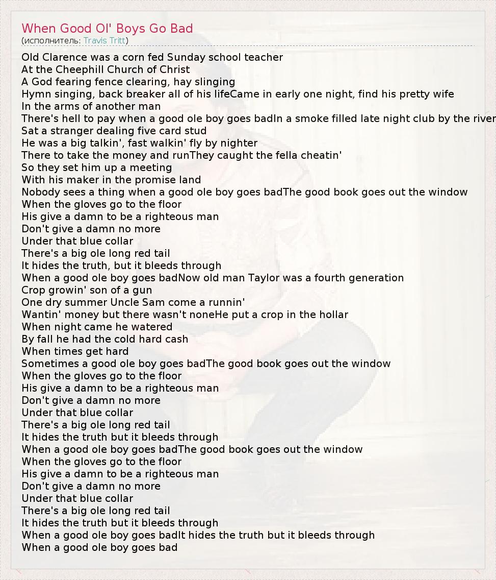 А как ты думаешь, о чем песня "When Good Ol' Boys Go Bad" ?