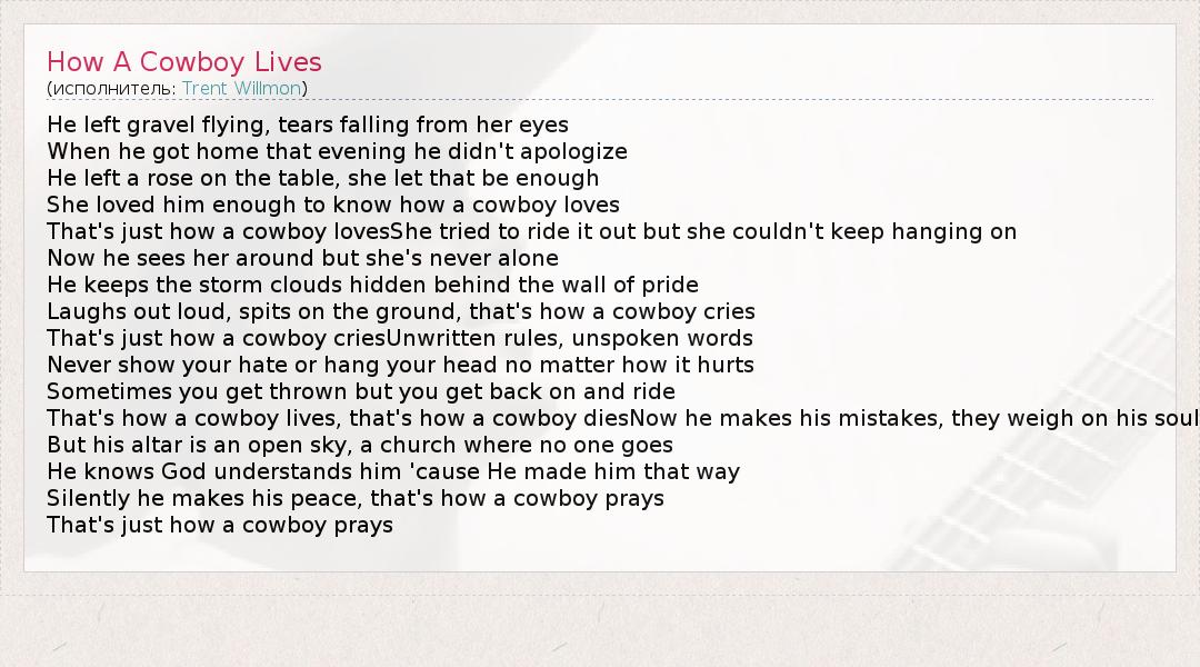 А как ты думаешь, о чем песня "How A Cowboy Lives" ?