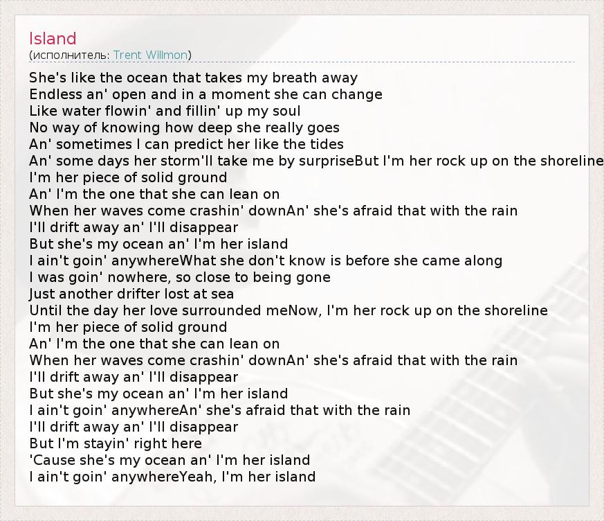 Until the day her love surrounded meNow, I'm her rock up on the shoreline