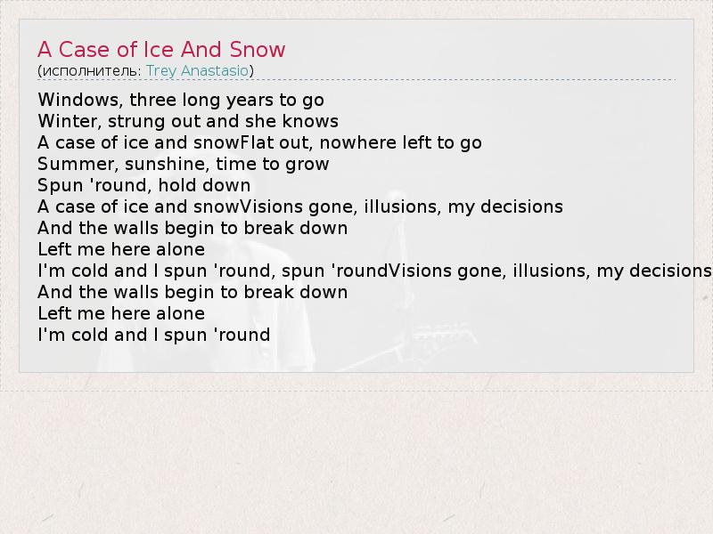 А как ты думаешь, о чем песня "A Case of Ice And Snow" ?