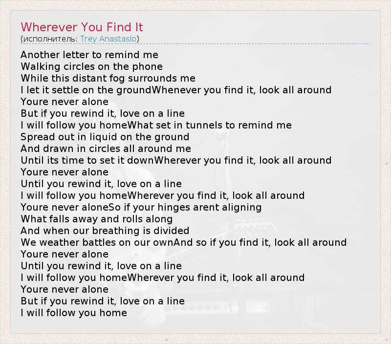 А как ты думаешь, о чем песня "Wherever You Find It" ?