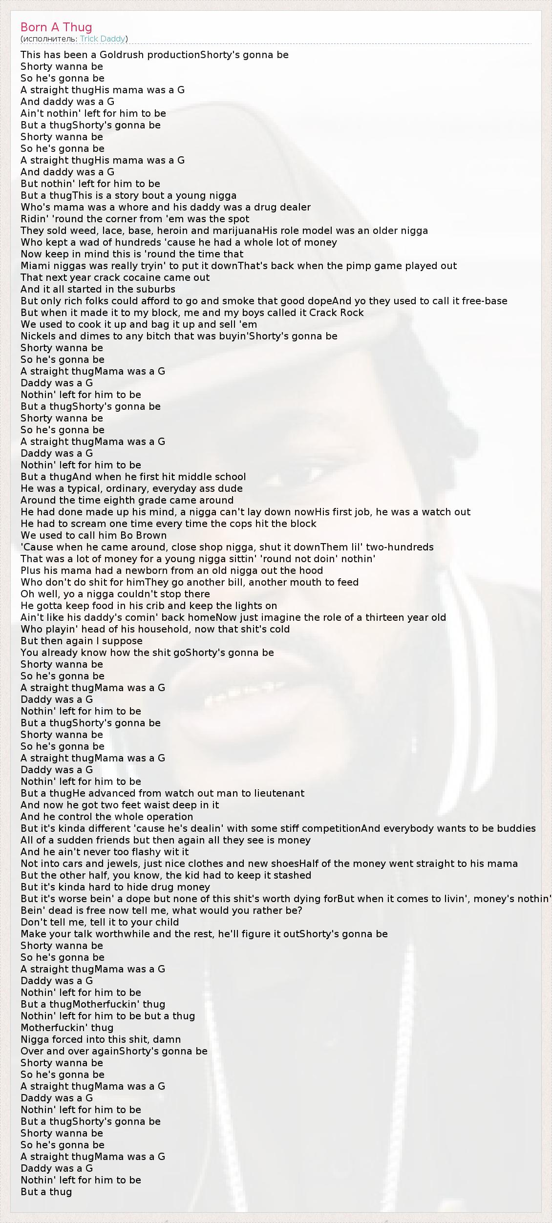 А как ты думаешь, о чем песня "Born A Thug" ?