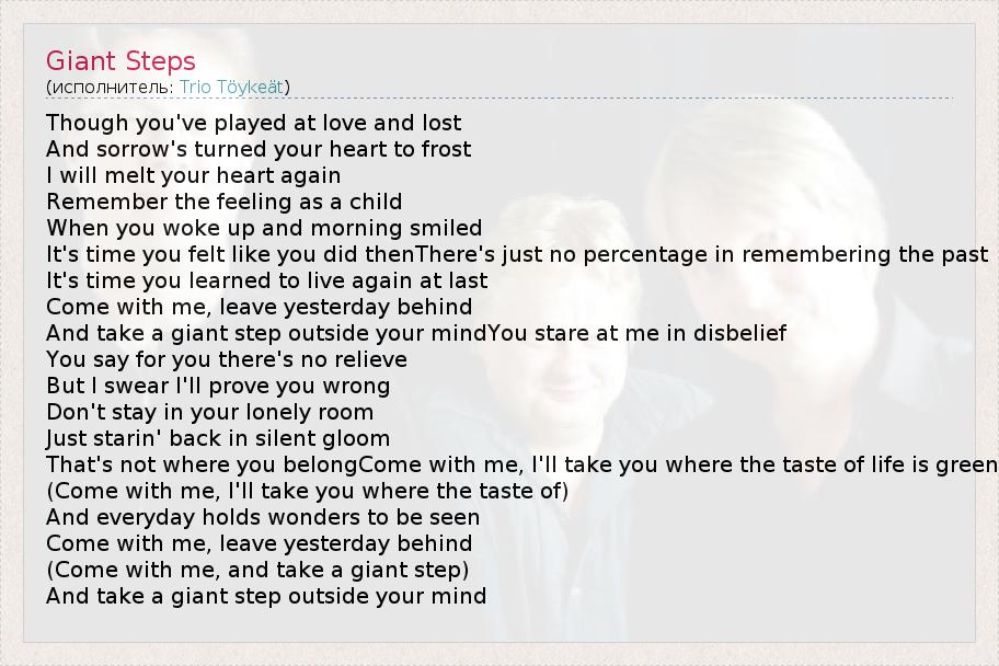 А как ты думаешь, о чем песня "Giant Steps" ?