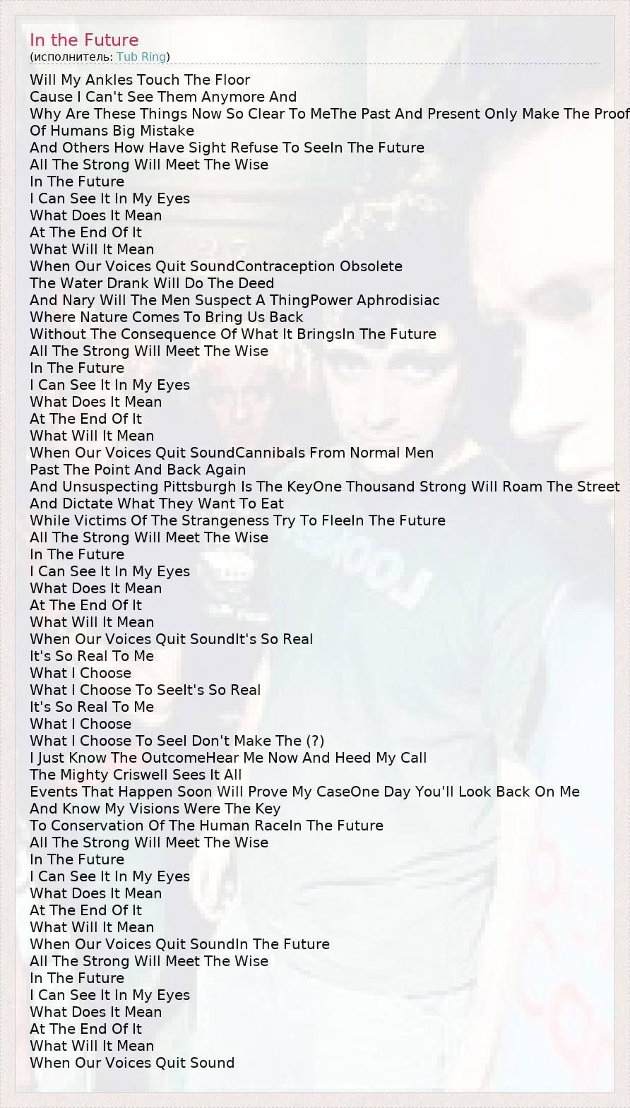 Это интересно:Tub Ring is a tornado of genres mixing punk, classical, surf, a-capella, hard-core, pop, and whatever else crosses their path into one cohesive blend of rock.Forging this sound in 2001, Tub Ring has been a force of nature in the left-of-center world of music, building momentum and inertia with every day that passes. The band’s first album of avant-garde pop, Drake Equation, was produced by Mr. Bungle’s Trey Spruance. Since, Tub Ring has released a total of 4 albums and a DVD/B-Side double pack.With each album charting into double digits on the CMJ Top 200, Tub Ring’s music has also been featured on Fox Sports, Xbox 360’s “Amp Snow Boarder 3”, various MTV/MTV2 programs, Spike... продолжение