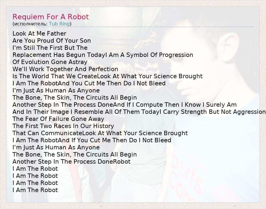 А как ты думаешь, о чем песня "Requiem For A Robot" ?