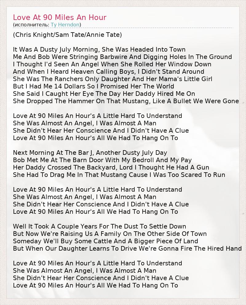 ГлавнаяИсполнителиTy HerndonLove At 90 Miles An Hour