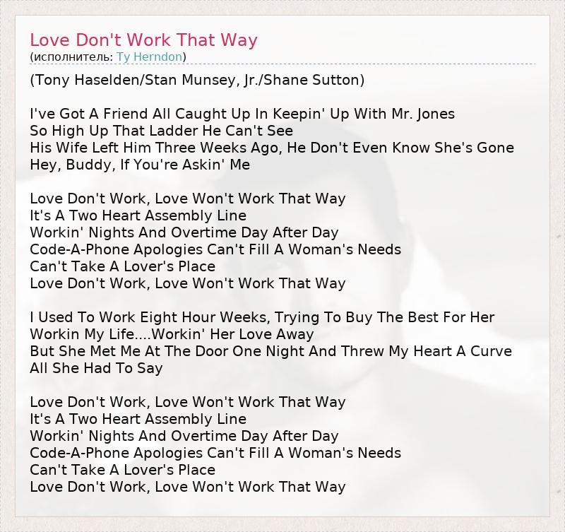 ГлавнаяИсполнителиTy HerndonLove Don't Work That Way