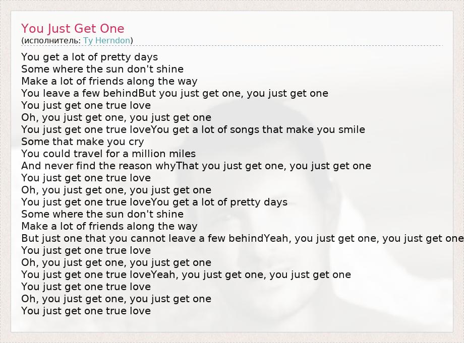 And never find the reason whyThat you just get one, you just get one