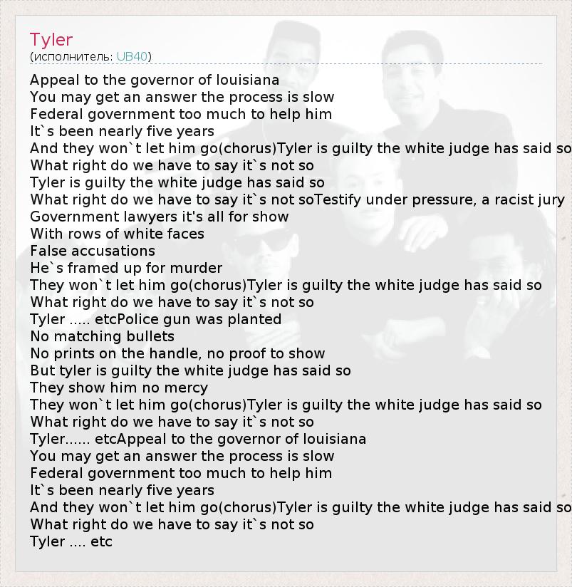 They won`t let him go(chorus)Tyler is guilty the white judge has said so