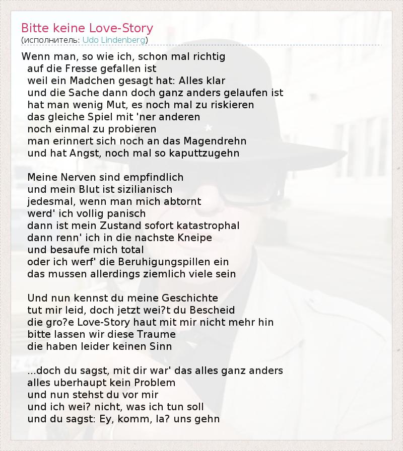 А как ты думаешь, о чем песня "Bitte keine Love-Story" ?