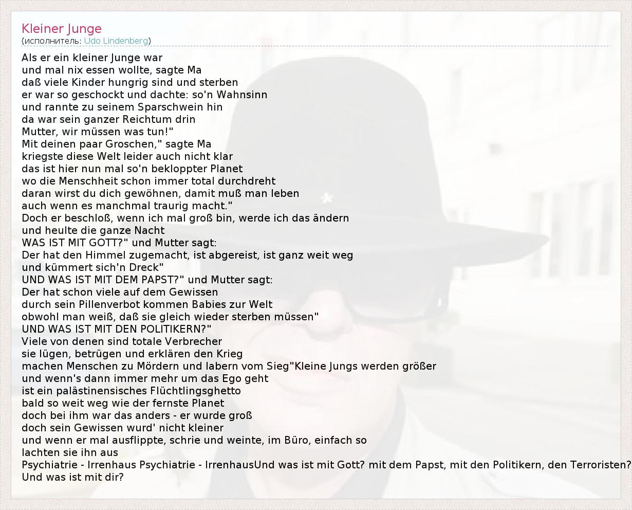 А как ты думаешь, о чем песня "Kleiner Junge" ?