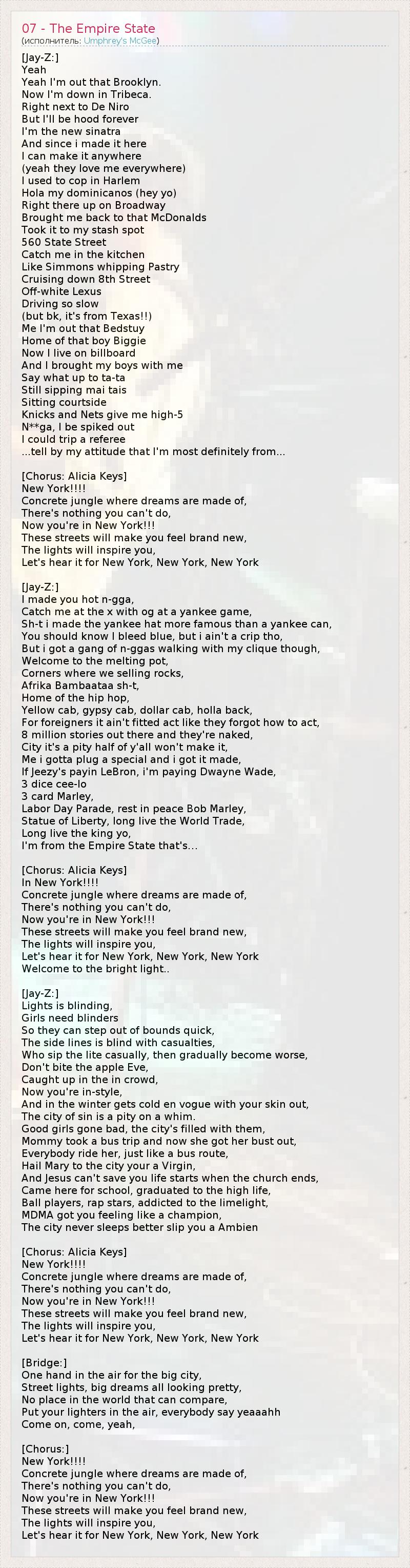 А как ты думаешь, о чем песня "07 - The Empire State" ?
