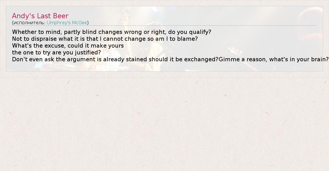 А как ты думаешь, о чем песня "Andy's Last Beer" ?