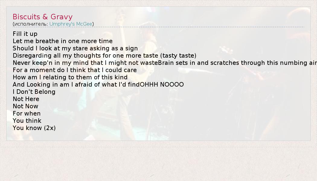 А как ты думаешь, о чем песня "Biscuits & Gravy" ?