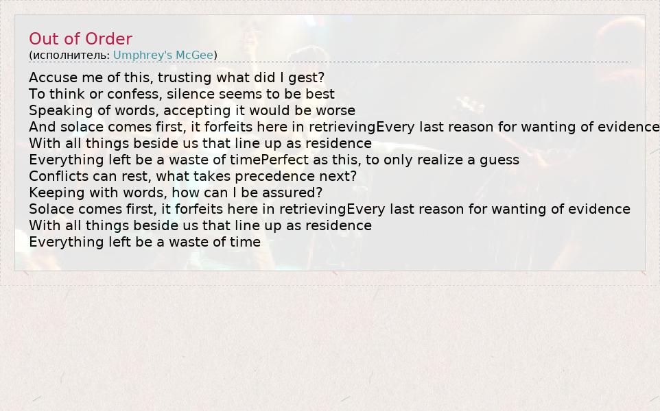 Это интересно:Umphrey's McGee is an American progressive rock band originally from South Bend, Indiana, whose music is often referred to as "progressive improvisation", or "improg". Although the band is part of the jam band scene, like Phish and the Grateful Dead (with ever-changing setlists, improvisation, two sets per night, open taping policy, etc.), they are much more influenced musically by progressive rock artists such as King Crimson, Yes, Pink Floyd, Frank Zappa, The Mahavishnu Orchestra, and early Genesis, as well as heavy metal bands such as Iron Maiden and Guns N' Roses. The band also identifies The Police, The Beatles, and Led Zeppelin as primary influences. UM experiments... продолжение