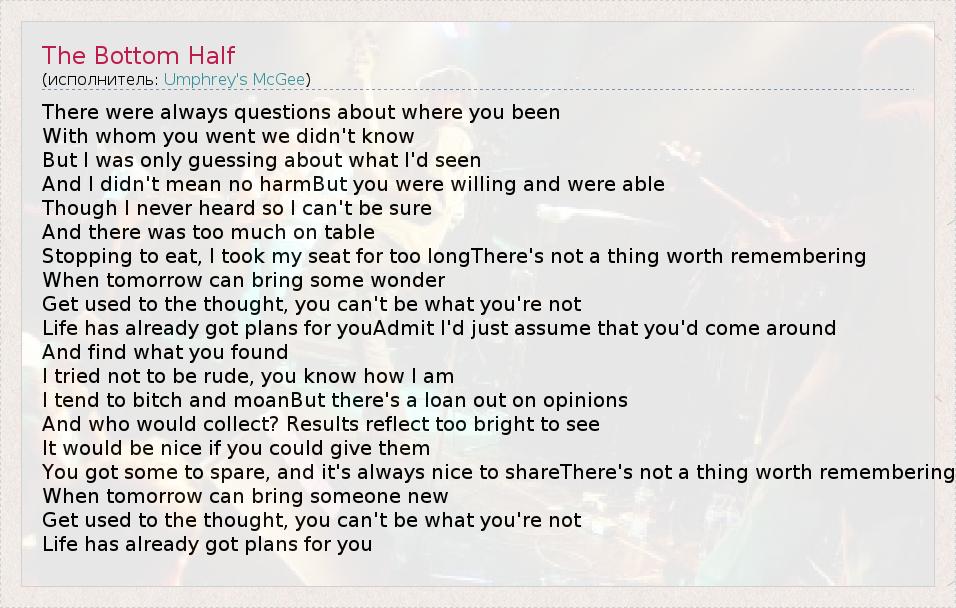 А как ты думаешь, о чем песня "The Bottom Half" ?