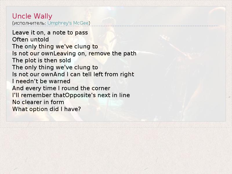 А как ты думаешь, о чем песня "Uncle Wally" ?