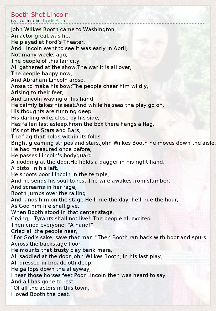 А как ты думаешь, о чем песня "Booth Shot Lincoln" ?