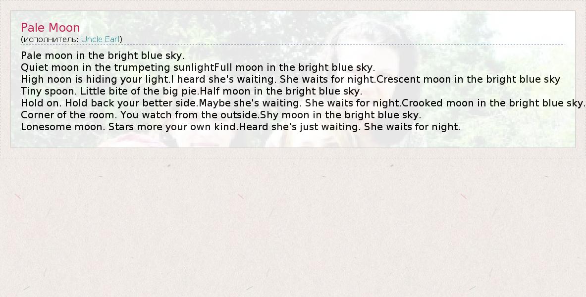 А как ты думаешь, о чем песня "Pale Moon" ?