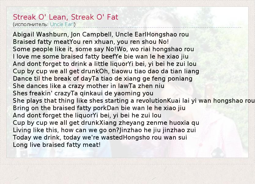 ГлавнаяИсполнителиUncle EarlStreak O' Lean, Streak O' Fat