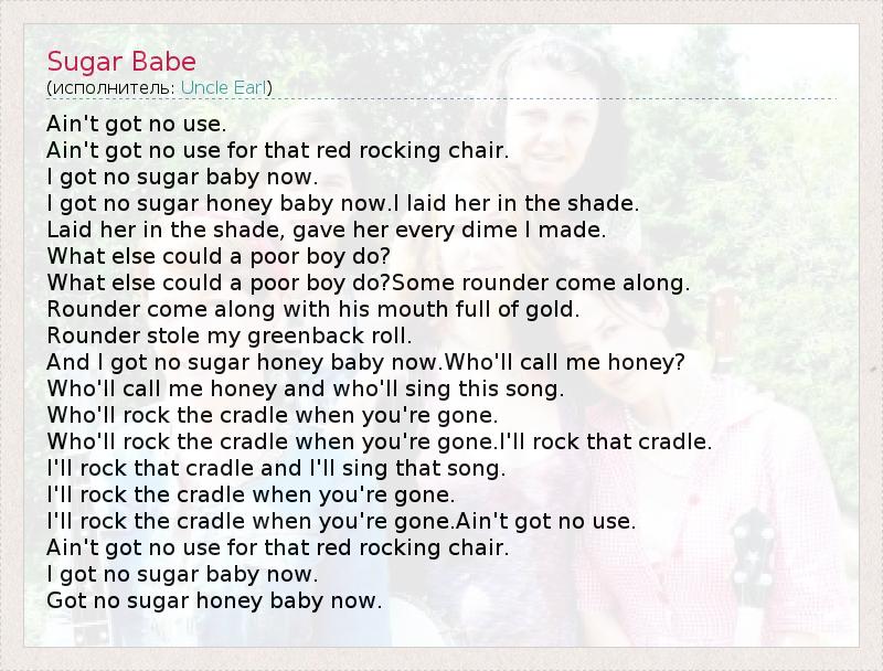 А как ты думаешь, о чем песня "Sugar Babe" ?