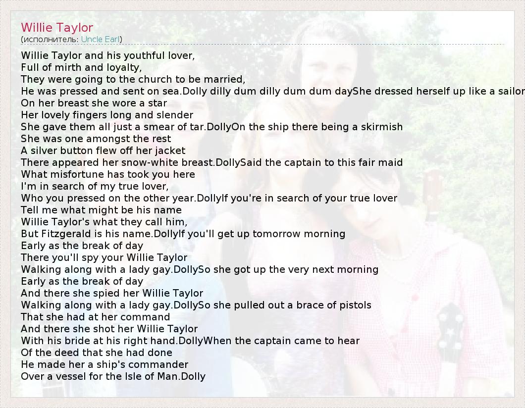 А как ты думаешь, о чем песня "Willie Taylor" ?