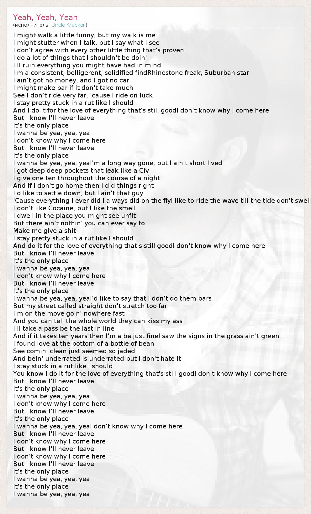 А как ты думаешь, о чем песня "Yeah, Yeah, Yeah" ?