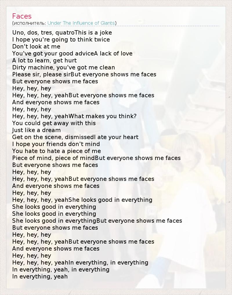 А как ты думаешь, о чем песня "Faces" ?