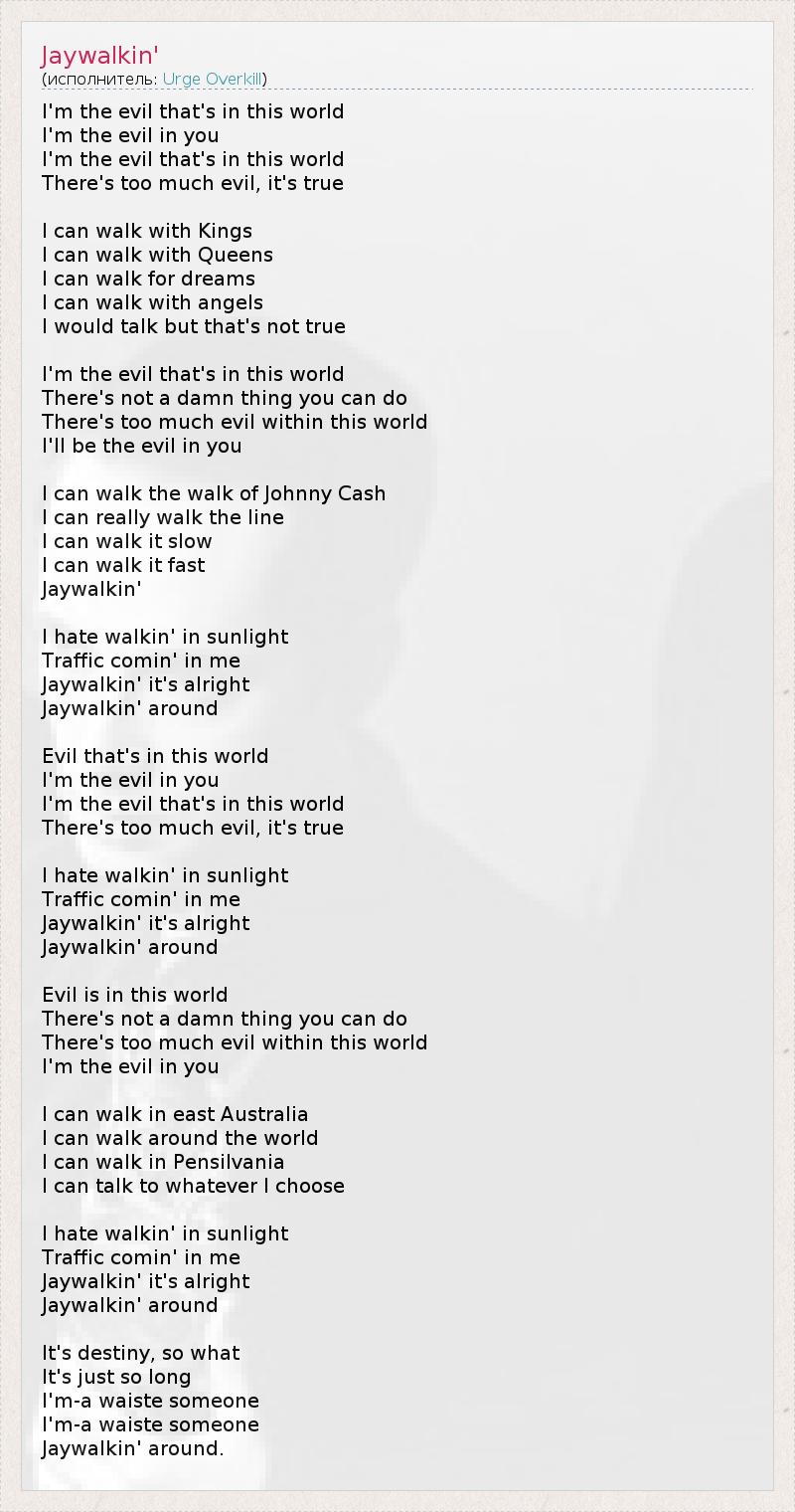 А как ты думаешь, о чем песня "Jaywalkin'" ?
