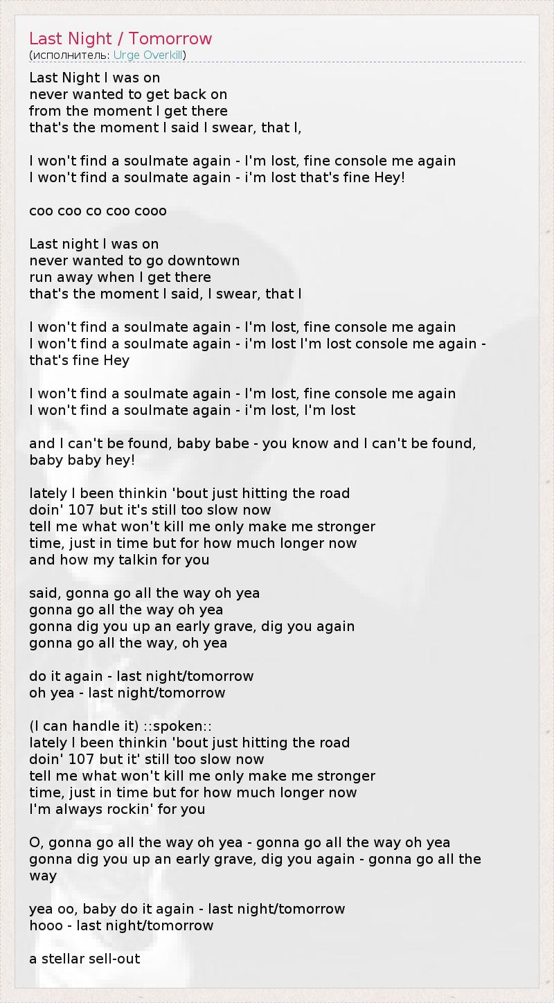 yea oo, baby do it again - last night/tomorrow