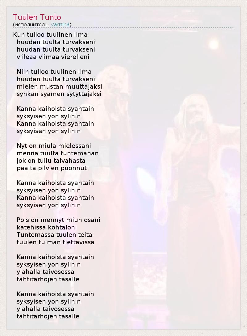 А как ты думаешь, о чем песня "Tuulen Tunto" ?