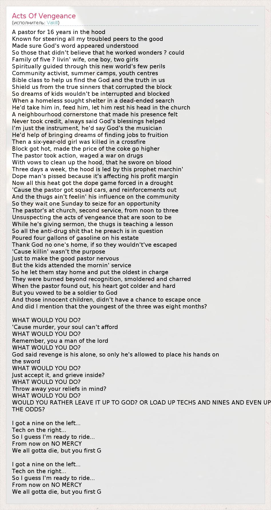 А как ты думаешь, о чем песня "Acts Of Vengeance" ?