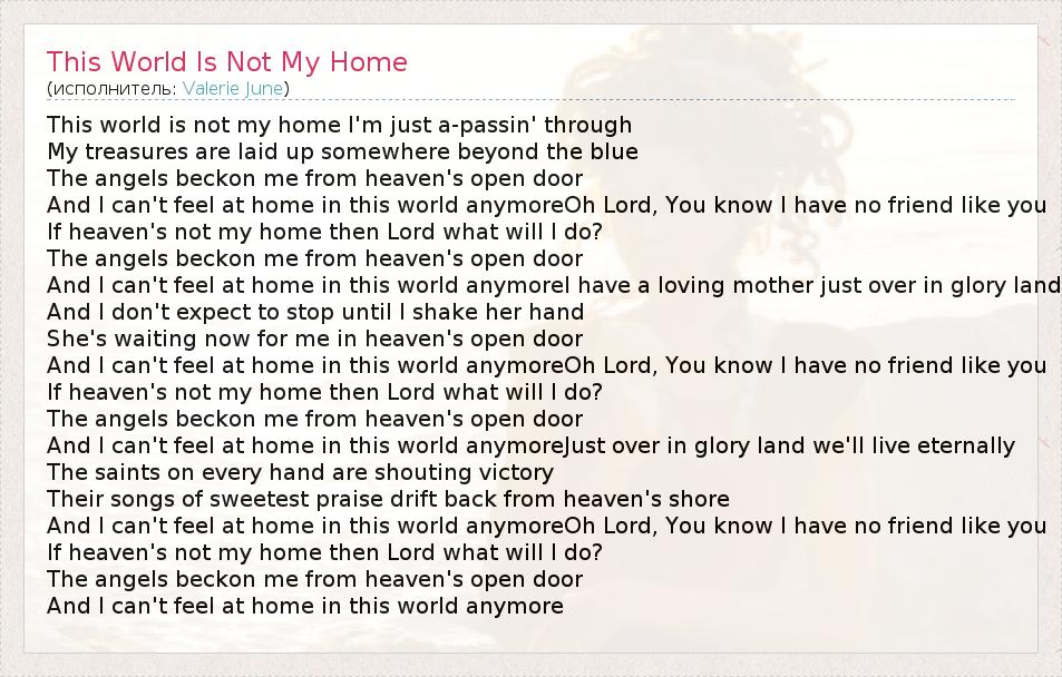 А как ты думаешь, о чем песня "This World Is Not My Home" ?