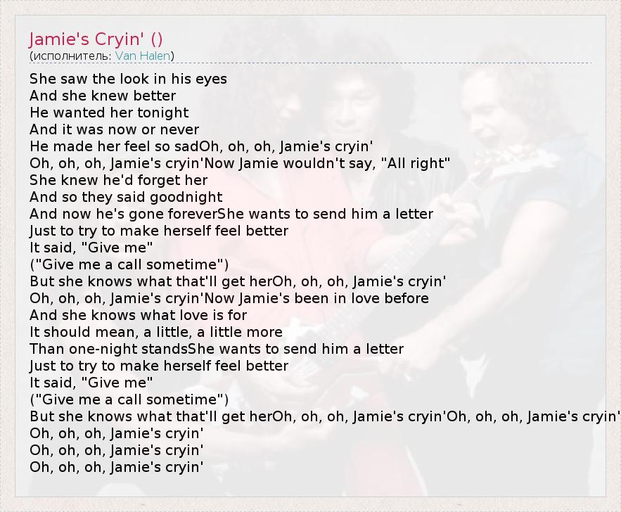 А как ты думаешь, о чем песня "Jamie's Cryin' ()" ?