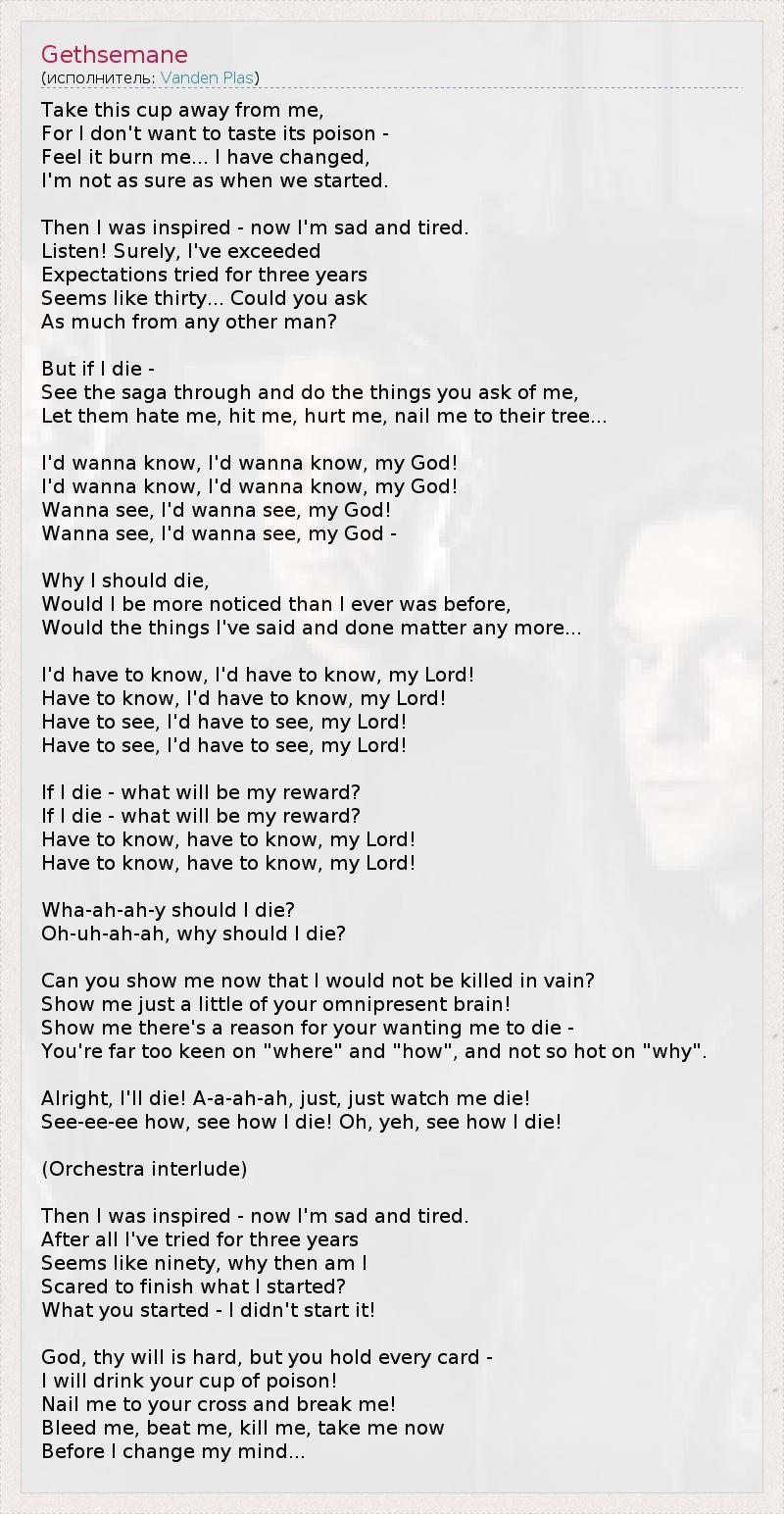 А как ты думаешь, о чем песня "Gethsemane" ?