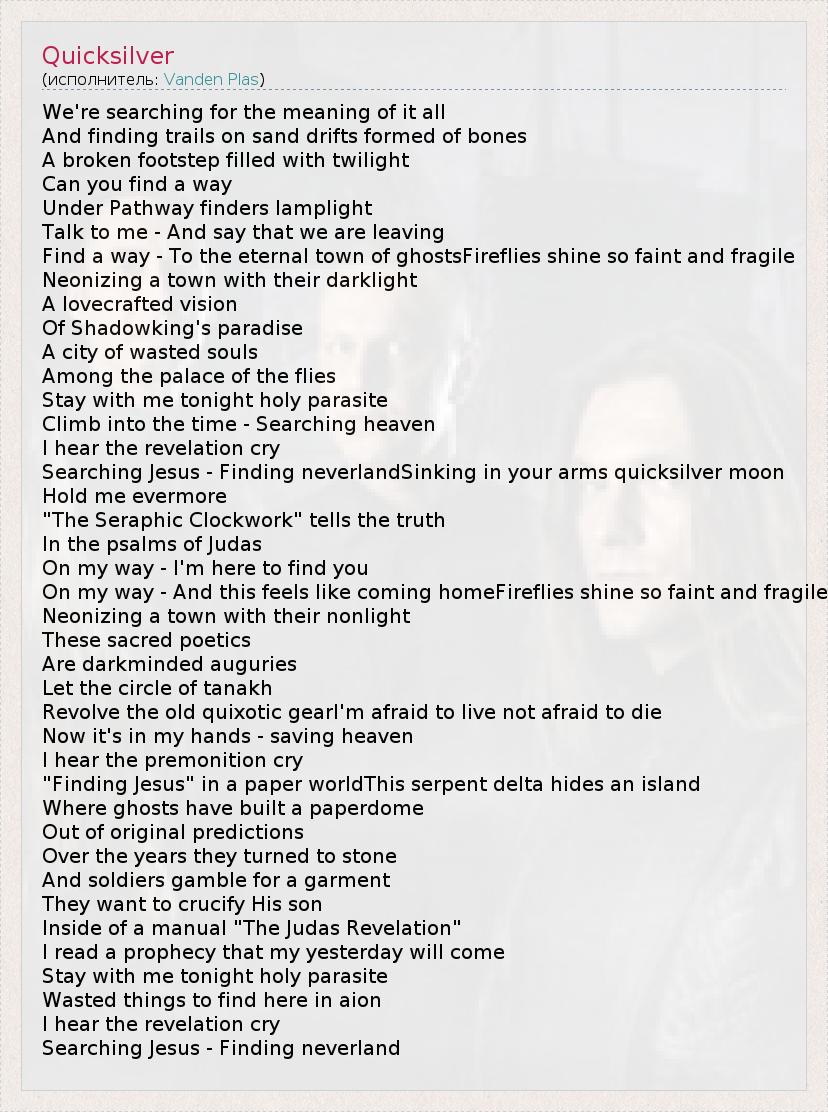 А как ты думаешь, о чем песня "Quicksilver" ?