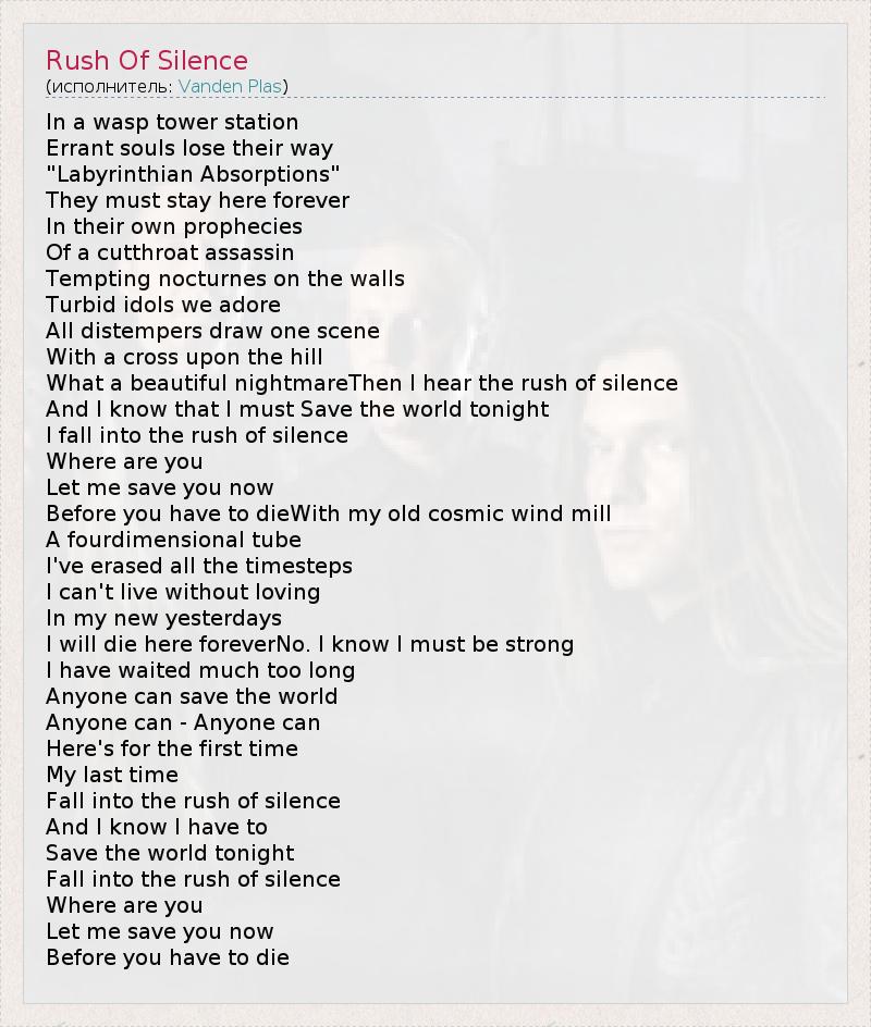А как ты думаешь, о чем песня "Rush Of Silence" ?