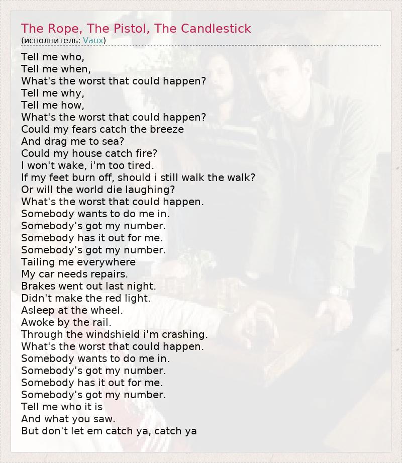 А как ты думаешь, о чем песня "The Rope, The Pistol, The Candlestick" ?