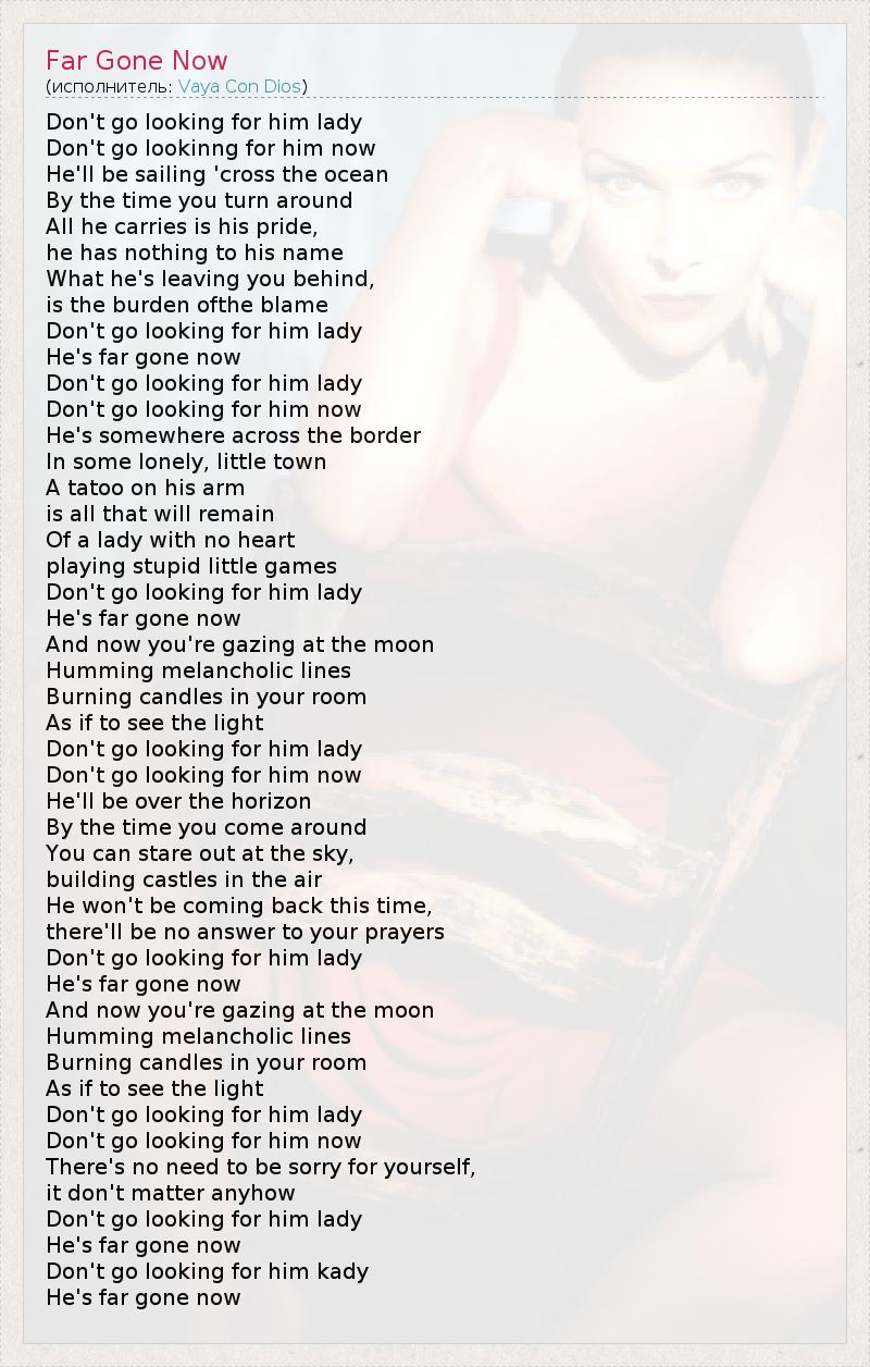 А как ты думаешь, о чем песня "Far Gone Now" ?