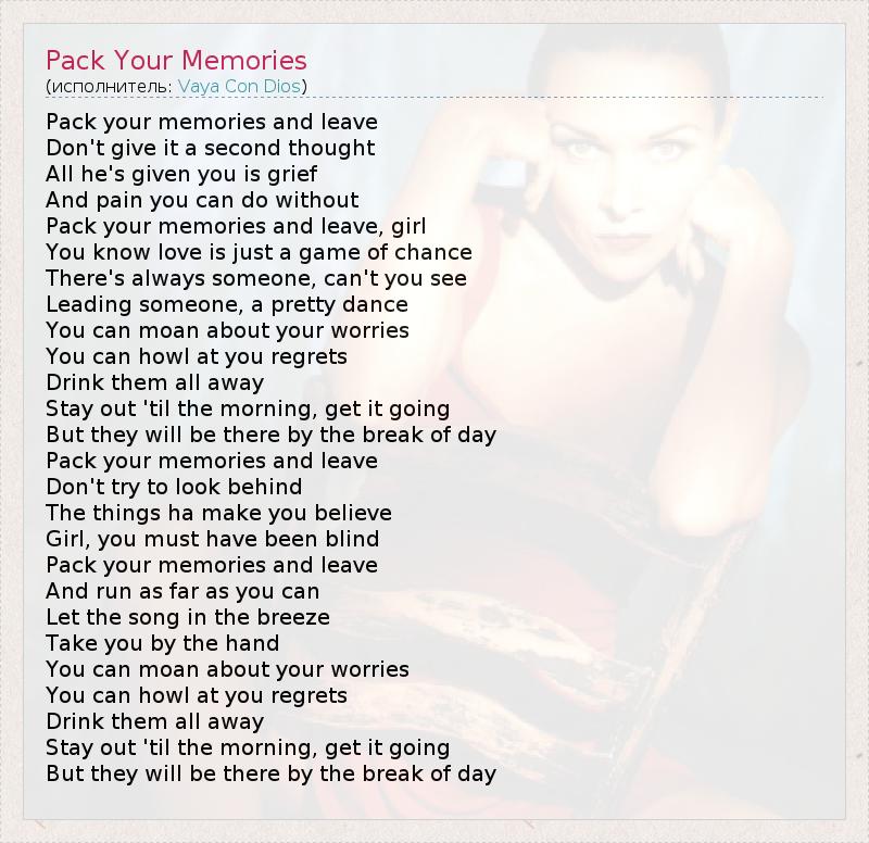 А как ты думаешь, о чем песня "Pack Your Memories" ?