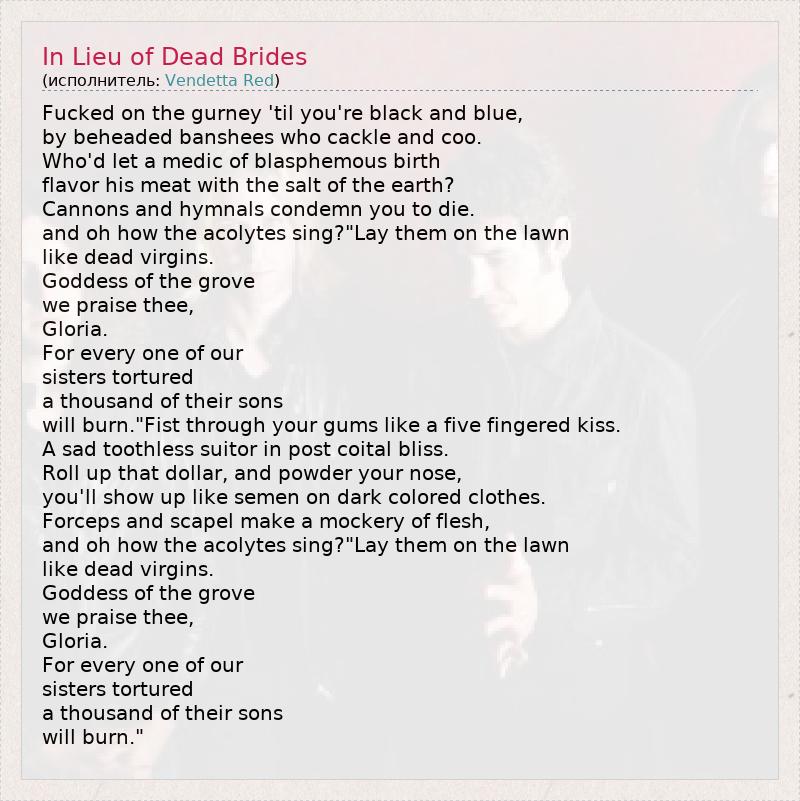 А как ты думаешь, о чем песня "In Lieu of Dead Brides" ?