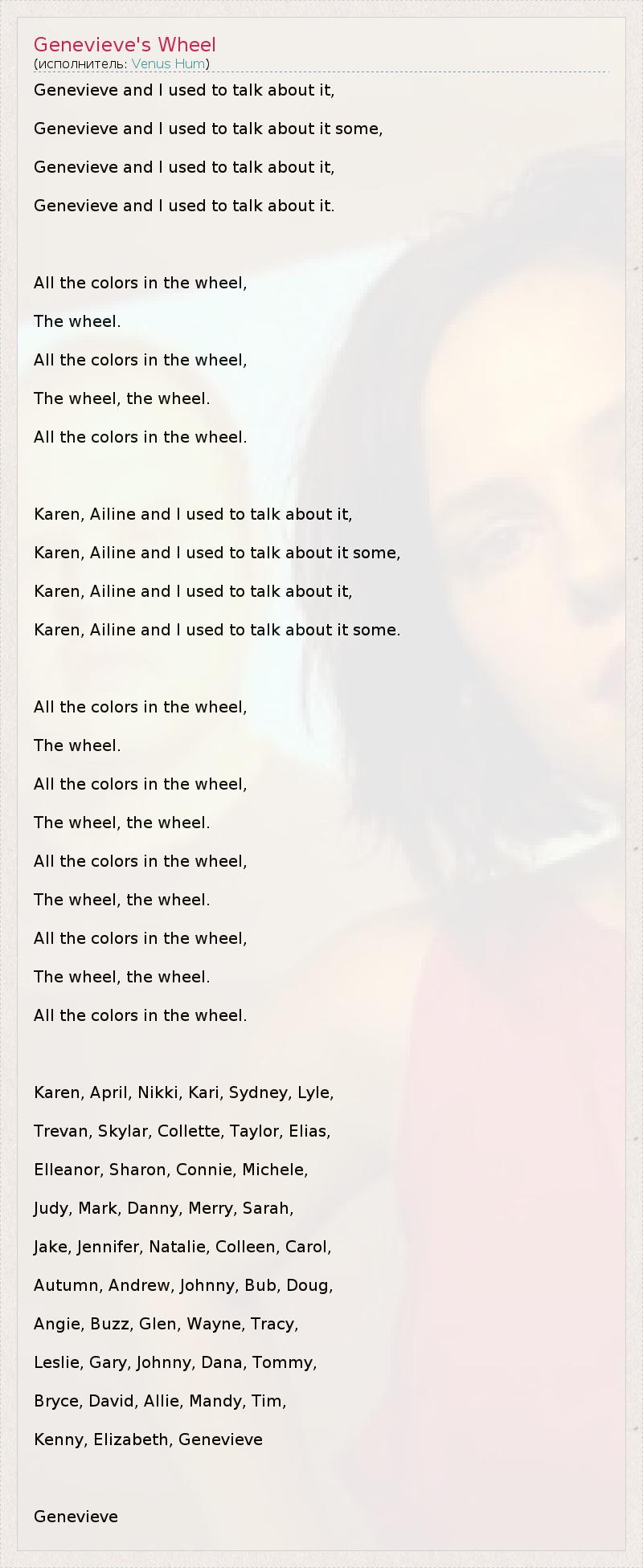 А как ты думаешь, о чем песня "Genevieve's Wheel" ?