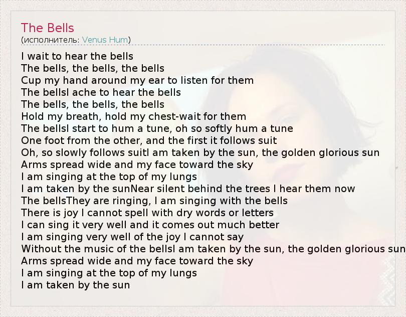 The bellsI start to hum a tune, oh so softly hum a tune