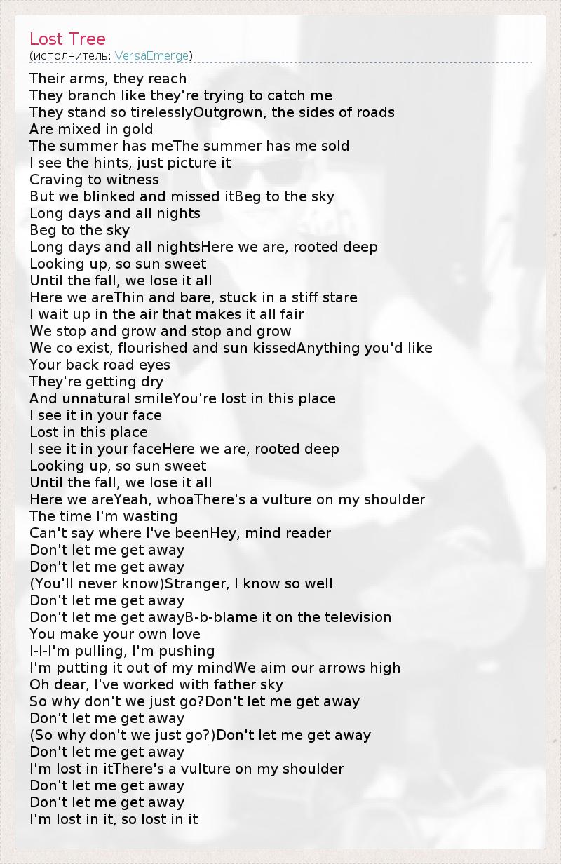А как ты думаешь, о чем песня "Lost Tree" ?
