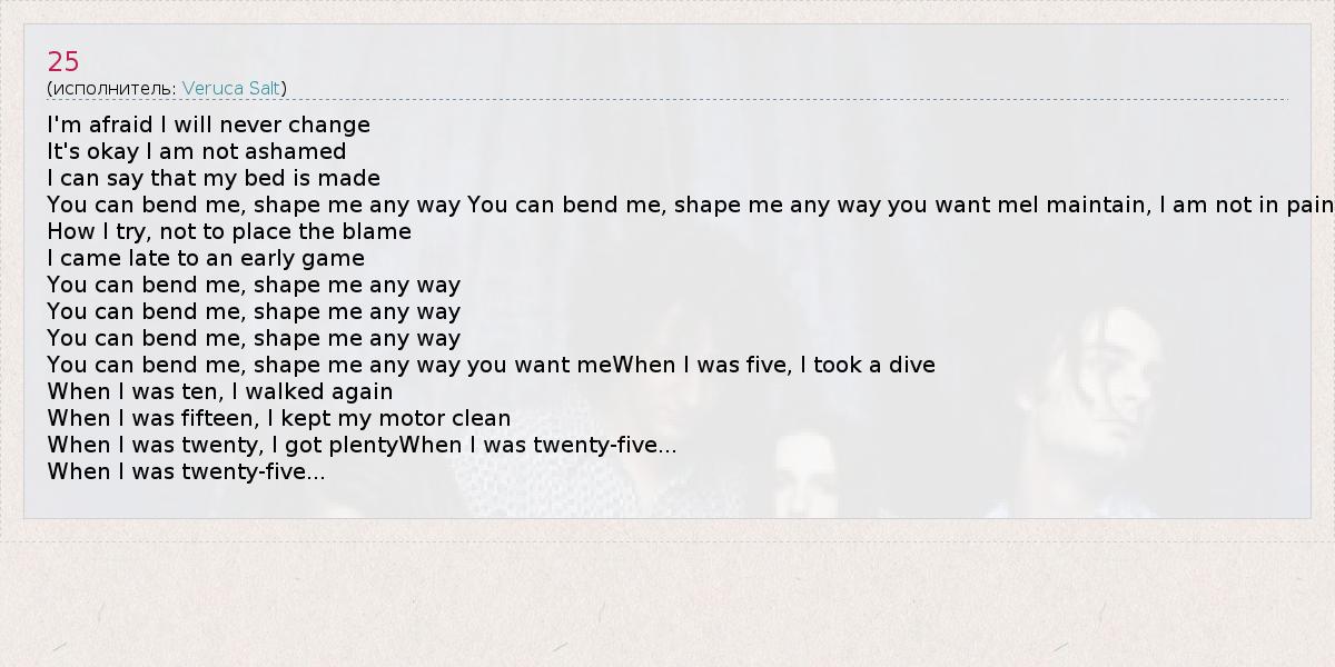 You can bend me, shape me any way You can bend me, shape me any way you want meI maintain, I am not in pain
